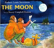 Today at the library Ivy pulled this book off the shelf and said, "I love this book! The moon has a face like a clock on the wall!" We have not taken out Robert Louis Stevenson's The Moon since the summer. I am not sure how she remembered it. The illustrations accompanying the poem are lovely - by Tracey Campbell Pearson. The poem originally appeared in A Child's Garden of Verses, 1885. Stevenson is Ivy's first famous poet!